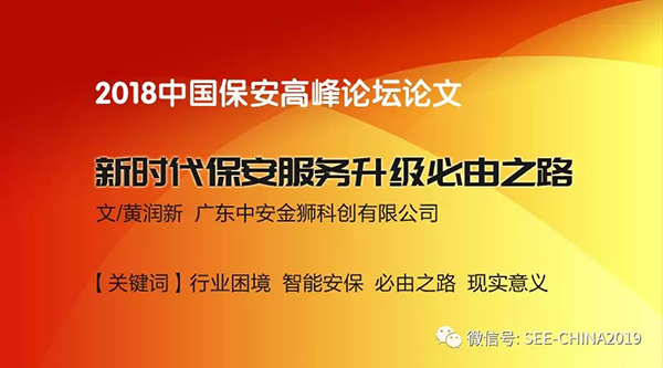 【摘要】隨著改革開放的縱深發(fā)展,我國保安行業(yè)的深度發(fā)展也出現(xiàn)諸多問題。保安行業(yè)是國家和社會穩(wěn)定的基礎,傳統(tǒng)保安行業(yè)變革問題值得社會高度關注。日新月異、復雜多變的社會環(huán)境下,科技強保、智能安保是傳統(tǒng)保安行業(yè)走出困境的必由之路。智能安保新模式契合國家當下及長遠發(fā)展戰(zhàn)略;智能安保新模式的運用有極其重要的現(xiàn)實意義。