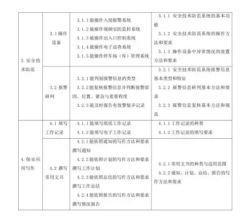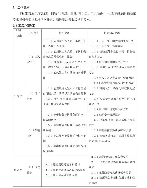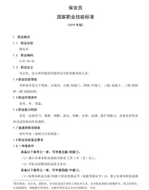 保安員國(guó)家職業(yè)技能標(biāo)準(zhǔn)目錄