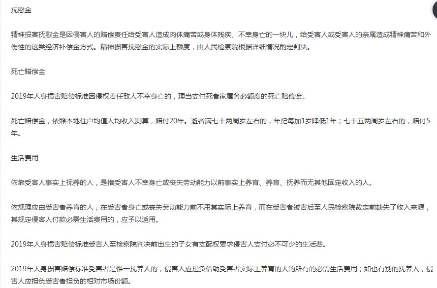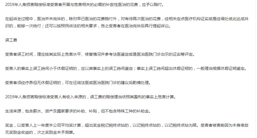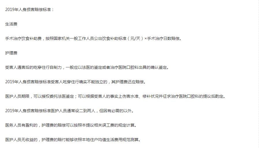 2019年人身損害賠償標準