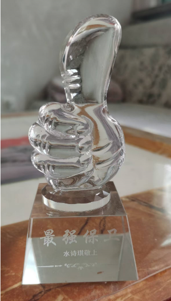 魯商幼兒園向公司保安孫兆榮贈送紀念品 彰顯公司服務品質特此表揚