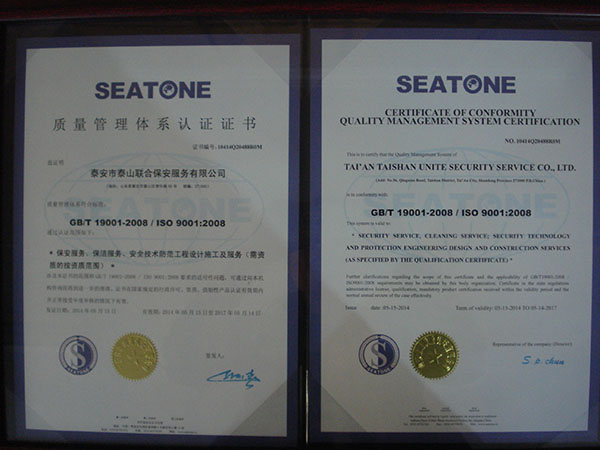 泰山聯(lián)合保安取得質(zhì)量管理體系認(rèn)證資質(zhì)