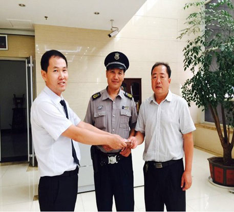 2015年8月1日,公司駐工行岱岳支行大廳保安履職巡查中,在自助銀行存款機中發(fā)現(xiàn)大量現(xiàn)金,經(jīng)調(diào)出錄象查找確認(rèn),是粗心的客戶匯款未成功造成的,直到對方未收到錢方才知道,經(jīng)清點9800元百元大鈔完壁歸趙,客戶對工行保安拾金不昧給于高度贊揚。