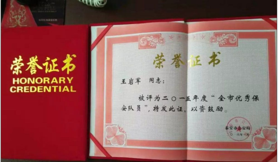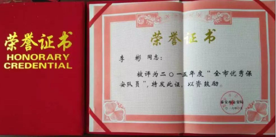保安公司按照工作部署和要求,結(jié)合實際,扎扎實實地落實各項安保工作措施,保安隊員樹立了高度的愛崗敬業(yè)精神,全心全意做好各項安保工作。2016年1月,王巖軍、李彬同志被市公安局評為二O一五年度“全市優(yōu)秀保安隊員”榮譽稱號。
