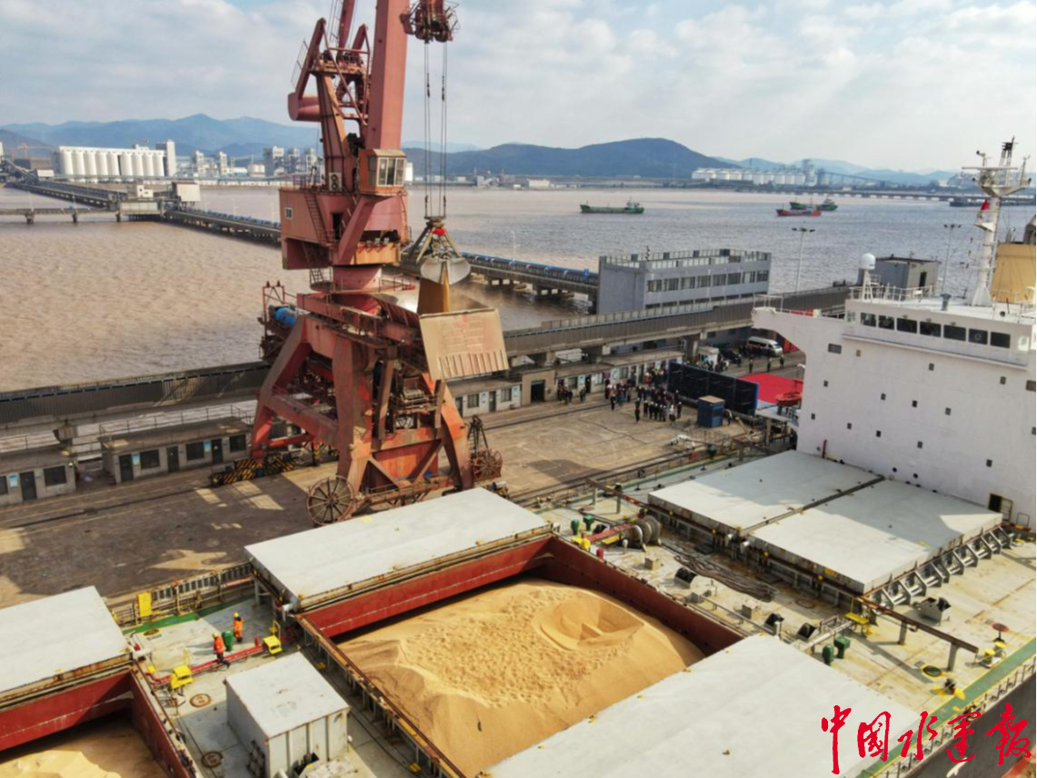 “十四五”期間,舟山市精準構(gòu)建“樞紐+通道+網(wǎng)絡(luò)”現(xiàn)代糧食物流體系,累計1.58億噸糧食經(jīng)寧波舟山港轉(zhuǎn)運至長江沿線。經(jīng)測算,經(jīng)舟山中轉(zhuǎn)的糧食已占據(jù)長江沿線全部進境糧食總量65%,占全國進境糧食21%。這條高效的“藍色糧道”,逐步成為長江經(jīng)濟帶糧食安全與供應(yīng)鏈暢通的重要支撐。
