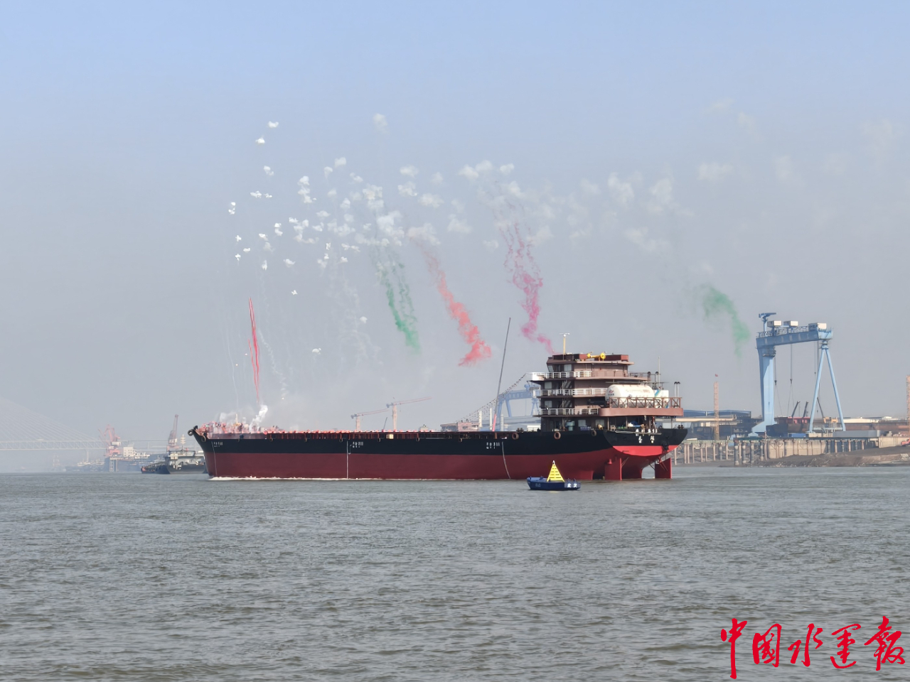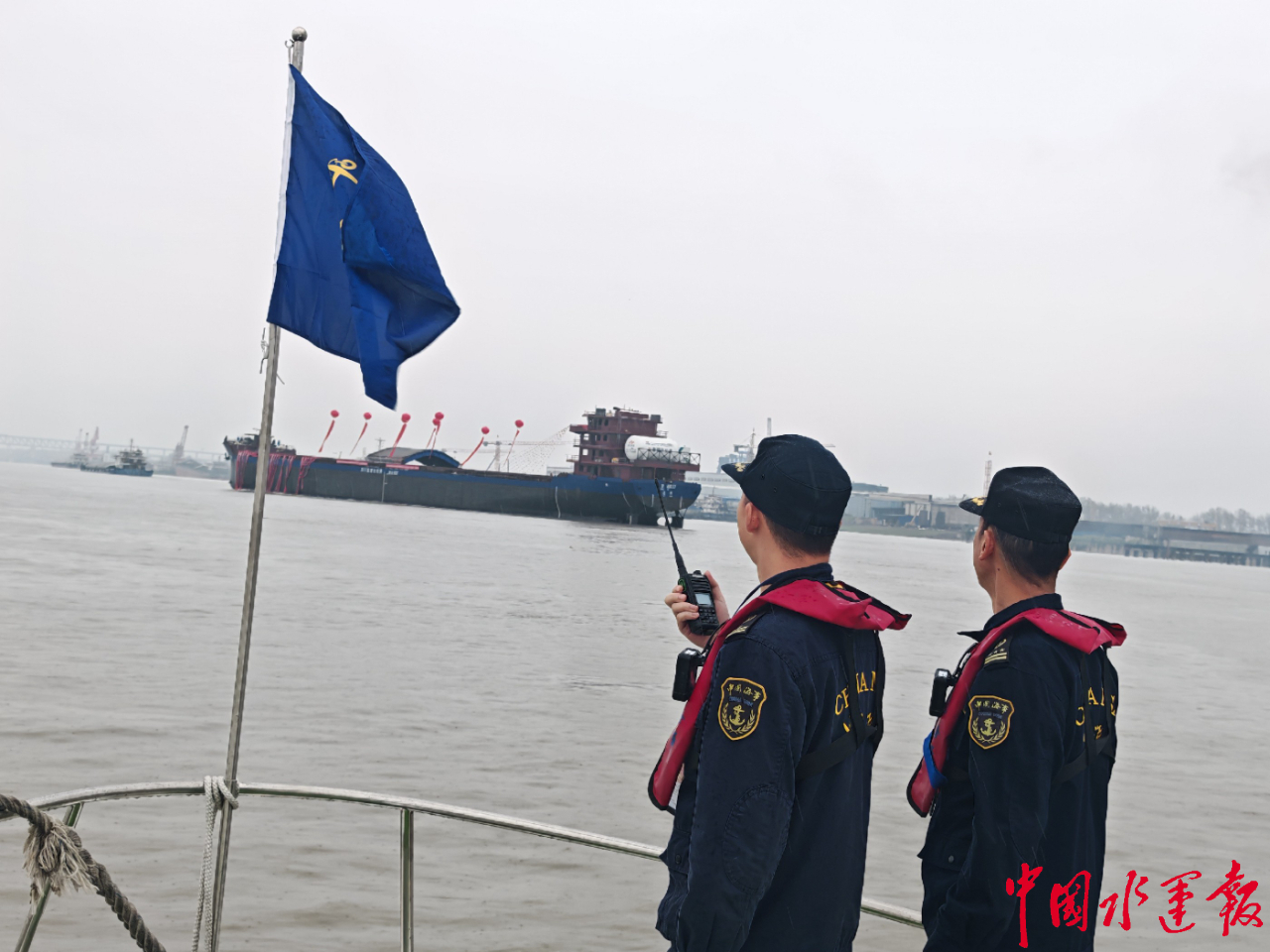 長(zhǎng)江海事護(hù)航萬噸級(jí)LNG動(dòng)力船“華渝集06”輪吉水。